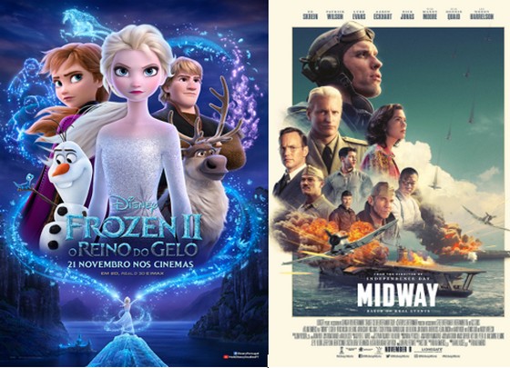 No mês de dezembro, serão exibidos dois grandes filmes: "Midway", um filme histórico sobre a guerra, baseado em factos verídicos, e "Frozen II - O Reino do Gelo", uma fantástica aventura para miúdos e graúdos!